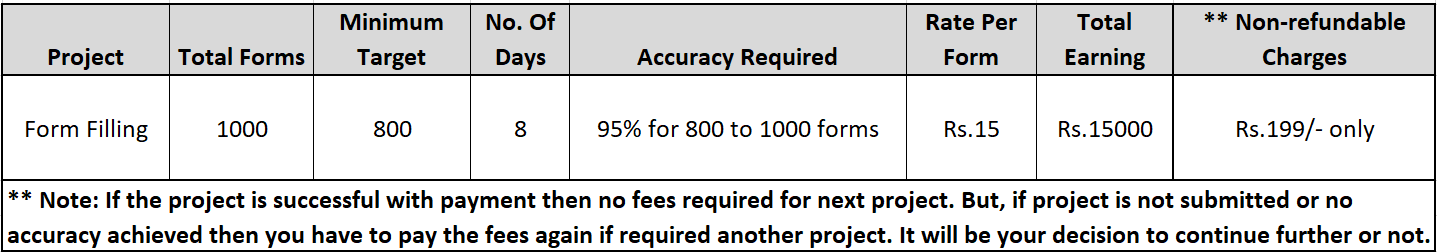 Payment Schedule For Form Filling :-