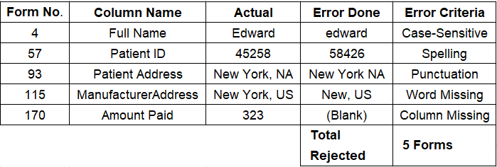 Form Rejection Criteria:-